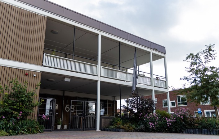 In een nieuwe woonwijk, tegenover een basisschool ligt Noorderhof. Bewoners en leerlingen hebben regelmatig contact.