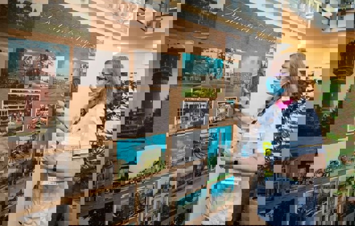 Jacqueline Voswijk, een van de coaches van het ontmoetingscentrum, vindt ze ook mooi. "Ik kom niet eens uit Baarn maar het is erg leuk om te zien en de vele verhalen erbij te horen. Het draagt bij aan het woongenot van de mensen. De geschiedenis gaat weer leven. Veel bewoners hebben op dit moment weinig afleiding wegens corona, dus dit is zeer welkom. Wij dachten eerst aan een grote foto van Baarn, nu zijn het er 63 geworden. Heel leuk".