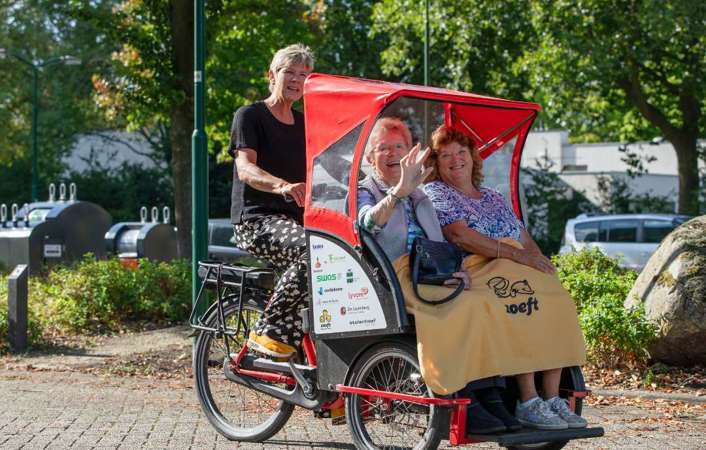 Op locatie Wiekslag Boerenstreek kunnen bewoners met hun mantelzorger een uitstapje maken met een riksja: een tweewielige fietskarretje. Janet en Jose maakten samen al meerdere riksja-ritjes. "Mijn moeder loopt met een rollator, buiten wandelen is voor haar te vermoeiend. Met een riksja kan zij ontspannen genieten van de omgeving en het is ook nog eens heel gezellig. We komen op deze manier verder dan met een rolstoel en beleven alles intenser dan met de auto”, ervaart Janet. “Een prachtig vervoermiddel waarvan iedereen gebruik zou moeten maken. Janet en alle andere mantelzorgers bedankt voor jullie betrokkenheid!