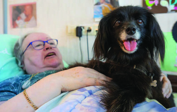“Miep voelt zelf haarfijn aan bij wie ze terecht kan. Daarnaast is zij goed gesocialiseerd. Dat betekent dat ik haar intensief heb getraind om ouderen met dementie te bezoeken; iemand kan zomaar gaan schreeuwen of huilen. Ze moet per direct reageren op af, lig, blijf – het zijn kwetsbare mensen hè. Laatst had een bewoner steeds de ochtendzorg afgewezen. Toen ik Miep bij haar op bed zette, werd iets doorbroken en wilde zij zich ineens wel wassen en aankleden.”
