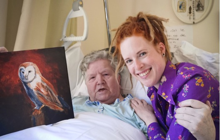 Zuster Dorothea woont al 60 jaar in het park. Ze vertelt: “Ik woonde eerst in het voormalig klooster, daar kijk ik nu vanaf mijn kamer op uit. Soms doet die aanblik pijn, maar ik ben wel blij dat ik op deze plek mocht blijven wonen. Ik kan hier schilderen, in de les of op mijn kamer.”